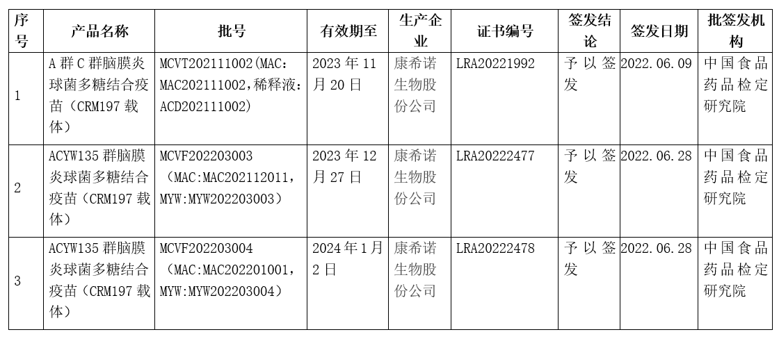 2022年4月份产品批签发信息